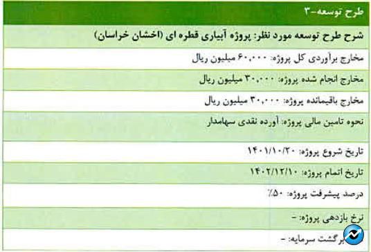 سیاست سهامدار عمده برای سنوات آینده تقسیم حداقل ۵۰ درصد سود عملکرد است.