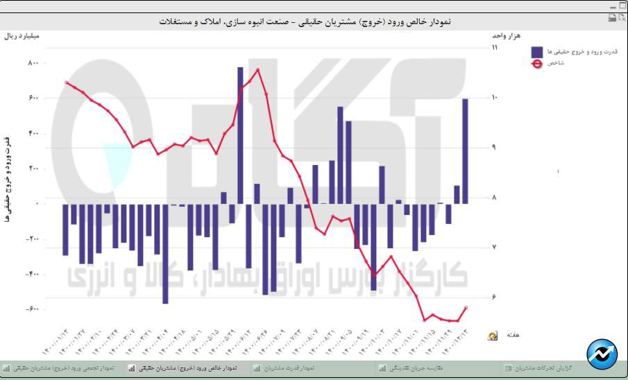 صنعت انبوه سازی دو هفته پیاپی است که با اقبال حقیقی ها همراه شده و میزبان سرمایه آنهاست. این هفته جذب پول حقیقی ها در این صنعت ۵،۷ برابر هفته قبل بود و از ۱۰،۴ میلیارد تومان به حدود ۶۰ میلیارد تومان افزایش یافت.